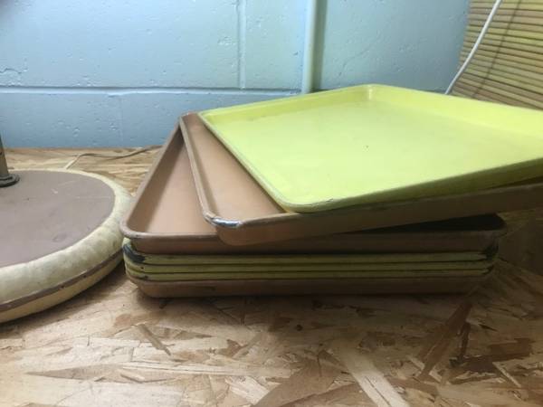 Most trays are yellow or tan.
