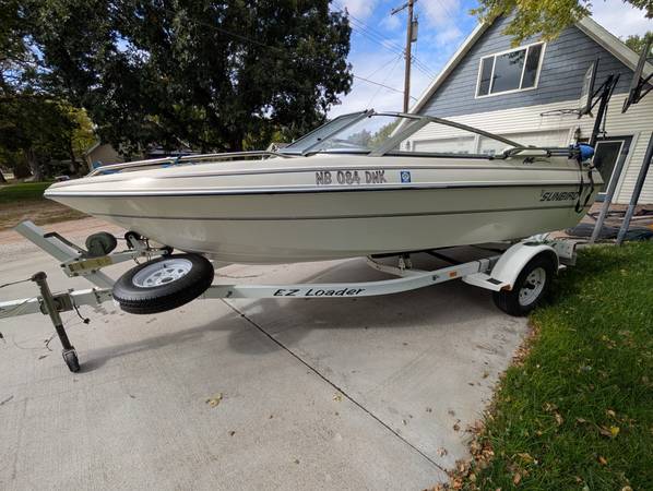Boat is a 1993 17FT open bow with a 90hp Johnson outboard. Boat runs well, had it on the lake 4 times this summer. This would be a great starter boat for anyone looking to get into a boat. Boat comes with Bimini top (for shade) as well as anchor, ropes, skis, 3 person tube, and a few life jackets. Trailer is in great shape and comes with a new spare. May be up for trades or give your best offer. If interested or have questions call Justin at show contact info
