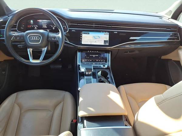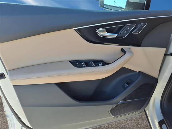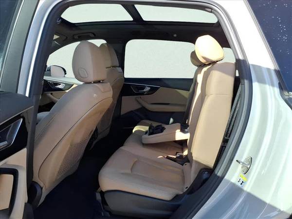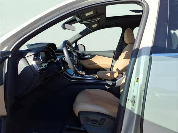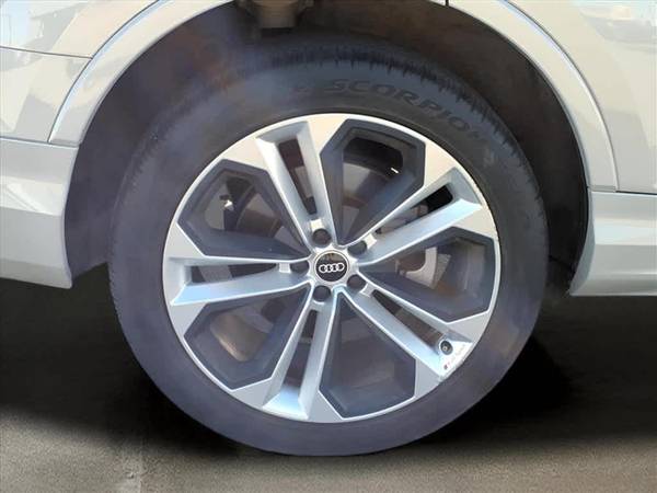 EXECUTIVE PACKAGE: extended leather package (armrests), Heated Rear Seats, 4-Zone Automatic Climate Control, Driver & Passenger Front Seats w/Ventilation, 4-way power lumbar, Audi Adaptive Cruise Assist w/Traffic Jam Assist, turn assist, Rear Door/Side Windows & Tailgate Sunshades, Audi Active Lane Assist w/Emergency Assist, PREMIUM PLUS PACKAGE: Bang & Olufsen 3D Premium Sound System, Audi Phone Box w/Wireless Charging, signal booster, 3-Spoke Multifunction Steering Wheel w/Paddles, Heated, Ambient Interior Lighting Package, Heated Auto-Dimming Power Folding Exterior Mirrors, memory, Topview Camera System, virtual 360 view, Illuminated Door Sills, COMFORT ADAPTIVE AIR SUSPENSION, BLACK OPTIC PACKAGE: Wheels: 21 10-Spoke Star-Design Bi-Color Black, Tires: 285/40R21 All-Season, Black Optic Exterior Package, Black Grille, Black Roof Rails, Black Front & Rear Bumper Inserts, Black Door Blades, Black Window Surrounds, MATRIX-DESIGN LED HEADLIGHTS: LED DRL and taillights and dynamic rear indicators, WHEELS: 20 5-SPOKE TURBINE-DESIGN: (STD), WHEELS: 21 AUDI SPORT 5-DBL-SPOKE-MODULAR-DESIGN: Tires: 285/40R21 All-Season, GLACIER WHITE METALLIC, FRONT & REAR DOORS AUDI BEAM-RINGS: lower door trim LED light displaying Audi logo (4 rings), AUDI BASE CARRIER BARS W/STORAGE BAG, REAR SIDE AIRBAGS, AUDI BLACK RINGS & BADGES KIT: front and rear rings and model badge in gloss black, S line/quattro badges remain in chrome, AUDI GUARD PROTECTION KIT: all weather floor mats w/Q7 logo, cargo mat and touchscreen cleaning cloth, PRIVACY TRUNK COVER: retractable/removable cover for cargo space, INTERIOR PROTECTION PACKAGE: all weather floor mats w/Q7 logo and touchscreen cleaning cloth.