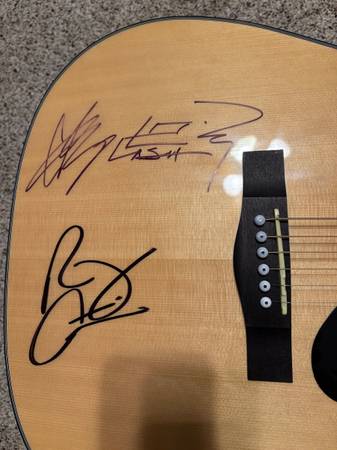 Guitar was played occasionally but shows no signs of buckle brash or other wear. Always kept in the case in a climate controlled environment. Autographs are sharp and most importantly on the body of the guitar, not the pick guard!