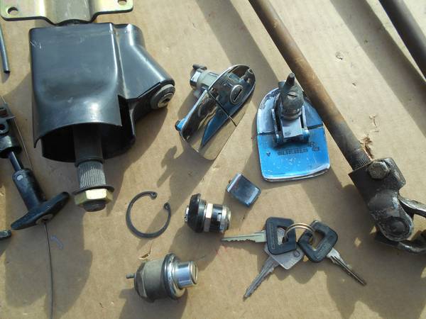 5. Steering wheel assembly-two black keys work with the one front hood lock, door handle, trunk, glove box lock. Chrome key only works with the ignition lock.