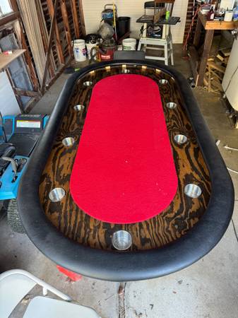 Custom, hand built poker table to the specification of each individual customer. Play a home game or a tournament on a one of a kind table!